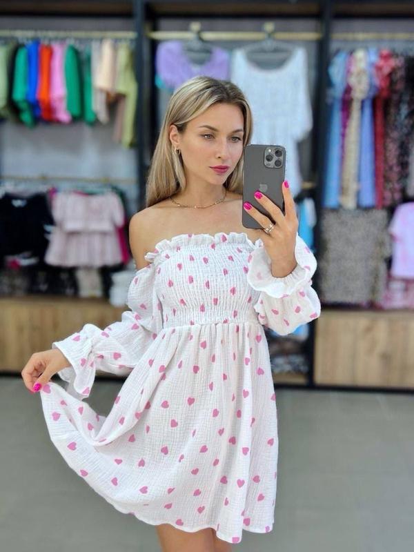 ♥️Невероятно красивое платье с открытыми плечами, с длинным рукавом. Легкая и приятная к телу. 🤍Модель: 1510 Размеры: 42-44, 46-48 Ткань:муслин Цвета: зеленый, красный, розовый. ✔️Замеры: ▫️Обхват груди (42-44)-58-128см (46-48)-60-130см ▫️Длина (42-44)-70см, (46-48)-75см ▫️Рукав 52см