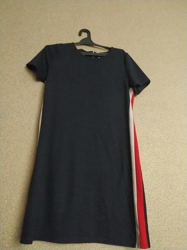 Стильное женское спортивное платье. Из недостатков - есть катышки в нижней части сзади. При желании можно избавиться с помощью специальной машинки. Длина -91 см Длина рукава от плеча -22 см Пог-47 см Пот-45 см Пос-47 см Ткань хорошо тянется