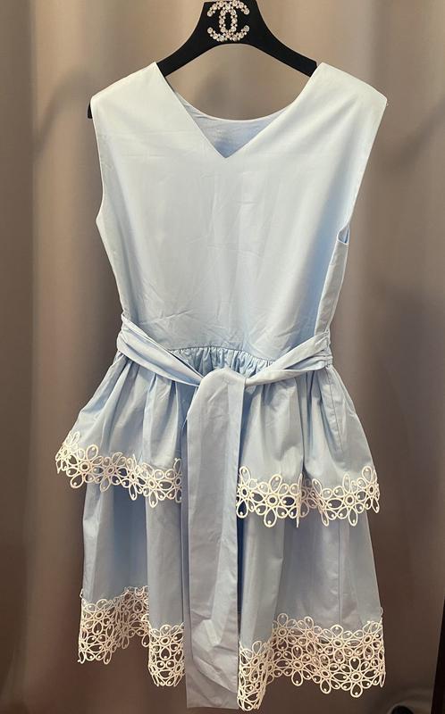 Платье летнее голубого цвета с кружевной вышивкой и пышной юбкой