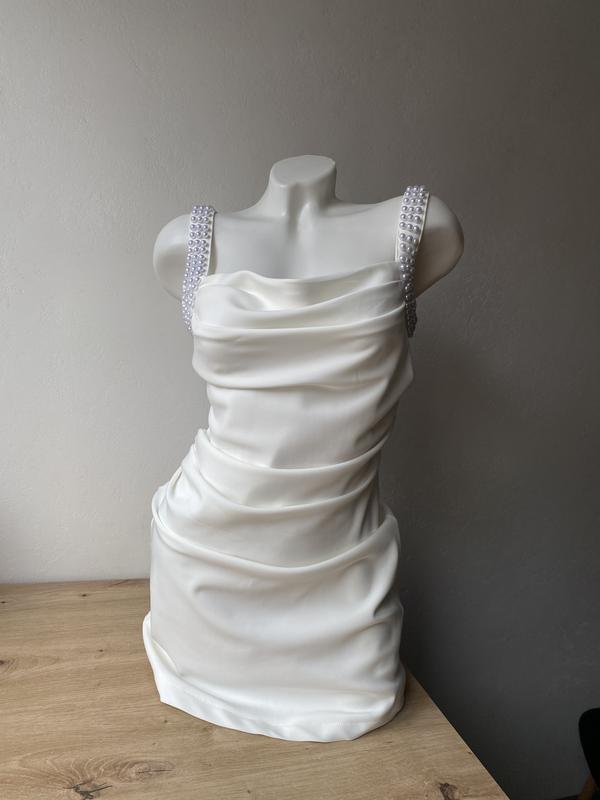 Сукня міні в кольорі айворі.Розмір M,нова. З дуже красивими бретельками в жемчужини . Тканина костюмна на підкладці.
