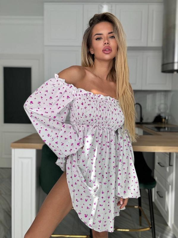 💙НОВИНКА💙 Нежное воздушное платье😍 ▪️Мод: 559 ▪️Тканина: софт принт ▪️Цвета: белый с розовым цветком, белый с голубым цветком ▪️Размер: универсал 42-46 ▪️Фото и видео в живую. Нереально нежное и женственное платье. Верх платья идет на резинках. Адаптируется под любой тип фигуры😌