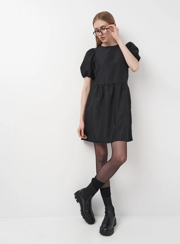 Платье H&M черного цвета, ткань легкая. Размер S, но подходит на М, свободное, на спине шнуровка. Бу, надевала один раз.