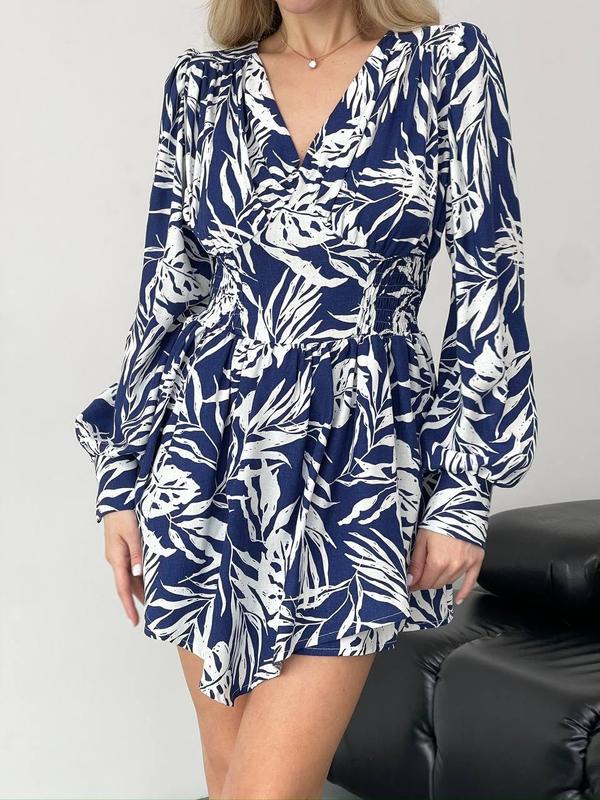 Платье-комбинезон платье лен с цветочным принтом длинный рукав