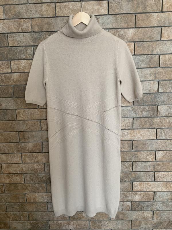 Бежевое кашемировое + шерстяное платье гольф с коротким рукавом max mara
