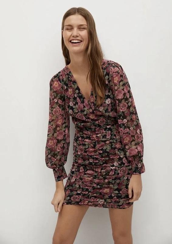 Платье, платье в цветы, цветочный принт mango с объемными рукавами