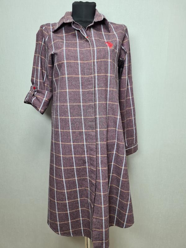 Платье - рубашка в клетку , очень стильно смотрится . Перед полностью на пуговицах Ткань коттон , не тонкий Рукав длинный , но есть шлейки для подката . Размер указан М , мне кажется лучше на S ПОГ- 46 см. Длина- 94 см. Рукав 59 си. Плечи- 33 см.