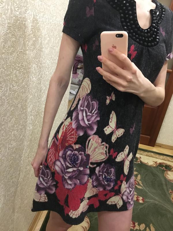 Платье тёплое темно серое с красивой расцветкой, слегка украшенное паетками.Можно носить как тунику.В идеальном состоянии.Размер -М