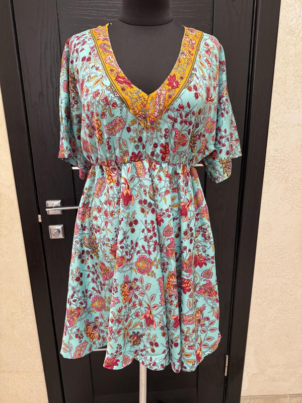 В идеальном состоянии Пояс- резинка, тягнеться Замеры на фото На спине завязки- кисточки Бирка с составом срезанная, ткань приятная, на сминается, пожалуй, вискоза/ полиэстер