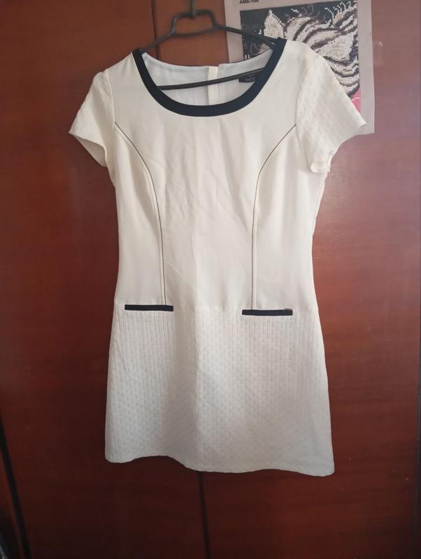 Белое платье с синей полоской у горловины. Отлично смотрится на фигуре. Размер указан 42 Замеры длина 86см пог 48см пот 47 см