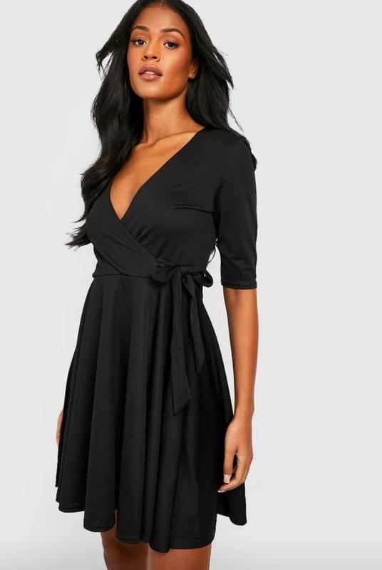 Платье мини на запах / на завязках / юбка клеш / фактурная