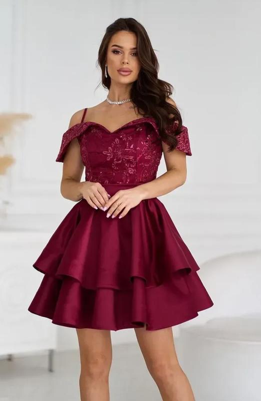 ‼️ОТПРАВЛЕНИЕ ВПРОДОВЖ 2-5 РАБОЧЫХ ДНЕВ!!️ Верх выполнен из сетки с роскошной вышивкой и блестящими пайетками, которые создают утонченный рисунок. Пышная многослойная юбка из прокатного атласа придает образу грациозность и легкость, а открытые плечи и изящные бретели делают платье еще более эффектным. Благодаря поясу в комплекте можно подчеркнуть талию, создавая идеальный силуэт. Размер: XS, S, M, L. Цвет: пудра, синий, зеленый, бордо, черный. 25023.