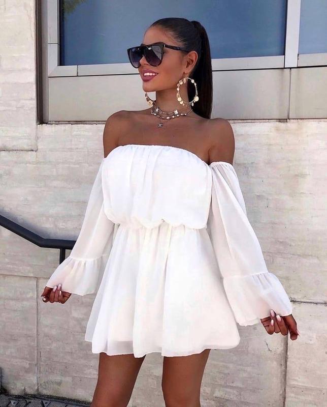 632 Тканина: крепшифон Размер: универсальный 42-46 Цвета: неон оранж, небесно голубой, черный, белый Плечи и талия платья на резинках, поэтому она отлично адаптируется под любой тип фигуры Юбка двойная, не просвечивается