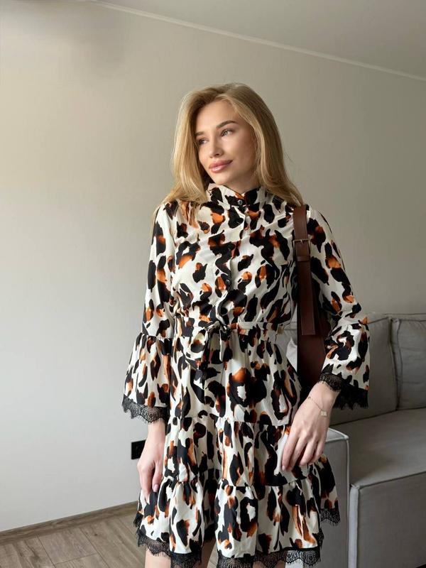 Сукня Размеры: 42-44, 46-48 Ткань: шелковый софт Цвет: коричневый, серый Пояс у комплекті. Талия на резинке. Ткань хорошего качества.