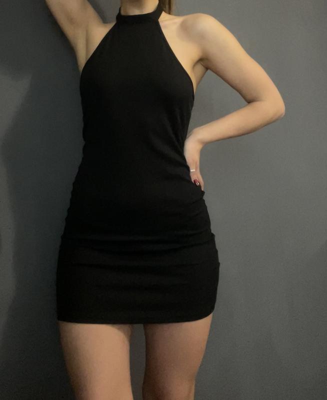 мини-платье в насыщенном черном цвете. Облегающий крой подчеркивает фигуру, также открытая спина и плечи. Ткань приятная к телу, хорошо тянется и не просвечивается. Пуговицы на месте