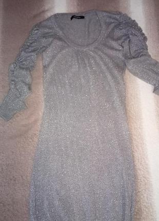 Плаття з хорошої тканини ,гарно облягає по фігурі, з блискучою срібною ниткою,рукав-тричетверті