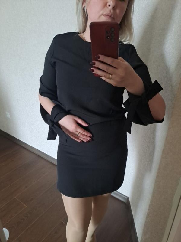 Женское коротенькое платье черного цвета с необычными рукавами. З заду на гудзику В наличии размер 42(S)
