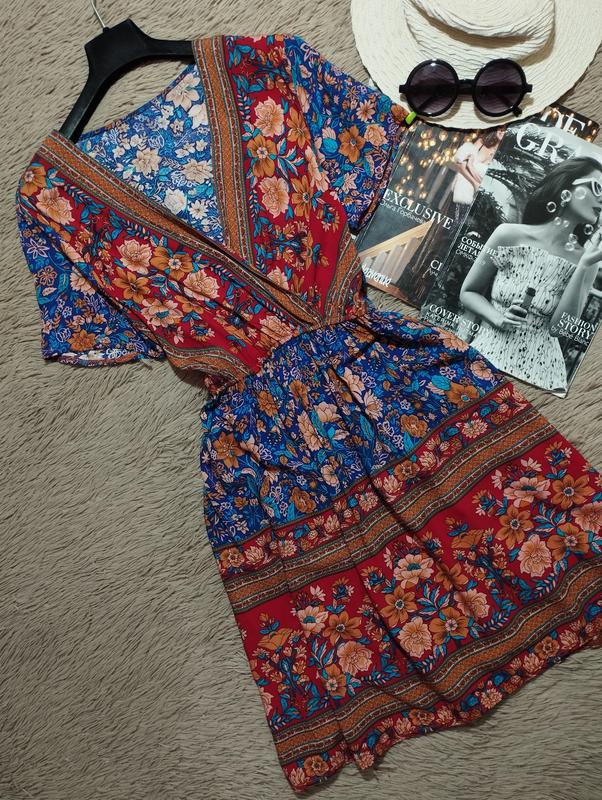 В идеальном состоянии.. Гарненька сукня на запах. Запах сшит. Тканина легка, не тягнеться. Выглядит супер 😍 Размер 10/38/М, но смотрите по замерам Замеры (полуобхват): Груди 48 Талия 31 (тянется до 50) Стегна 66 Длина от плеча 85
