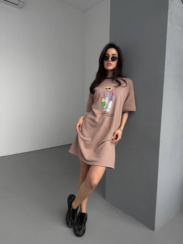 ‼️НОВИНКА ‼️ Весеннее платье-футболка с акцентной отделкой🥰 Очень комфортная и стильная✨ - свободный крой - актуальный принт -бавовняна тканина - модные цвета ◽️мод 245 ◽️цена 1199 грн ◽️размер : единственный (42-48) ◽️тканина : 2-х нитка петля ( 95%бавовни ) ◽️цвет: Бордо, беж, шоколад, молоко ◽️ЗАМІРИ ПО ВИРОБУ ОГ-ОБ-115 Длина-88 Длина рукава от горловины 36