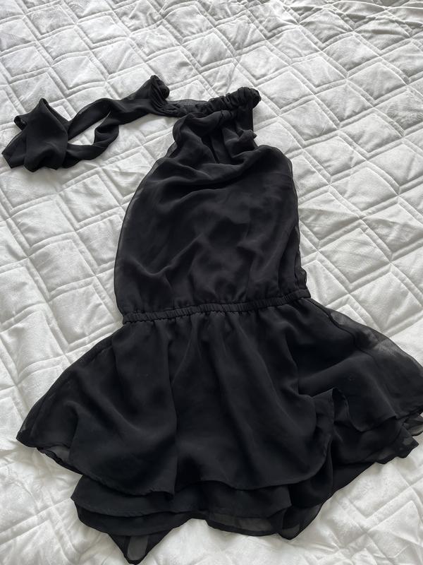 Черное платье в красивом состоянии, на шее - завязки Очень красивая обнаженная спинка, юбка на подкладке На поясе - резинка, сзади на спине тоже