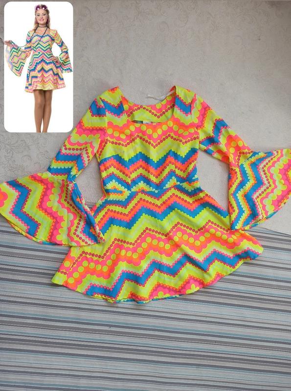 Платье кислотного цвета карнавальное маскарадное в стиле 70-х диско хиппи