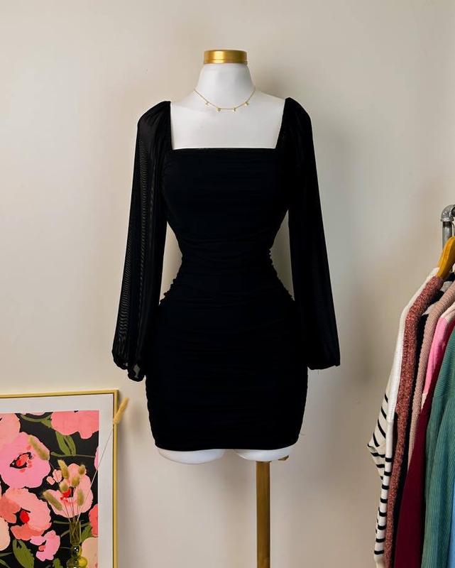 Платье (Модель 045) ▫️Ткань: плотный крепдайвинг + шифон ▪️Цвет: черный ▫️Размер : Xs/S M/L Цена: 560 грн. Приталенная модель с объемными рукавами из плотной ткани, которая моделирует фигуру. Платье на завязках по бокам, благодаря чему регулируется длина. То само платье, которое станет беспроигрышным вариантом для любого случая 🌿