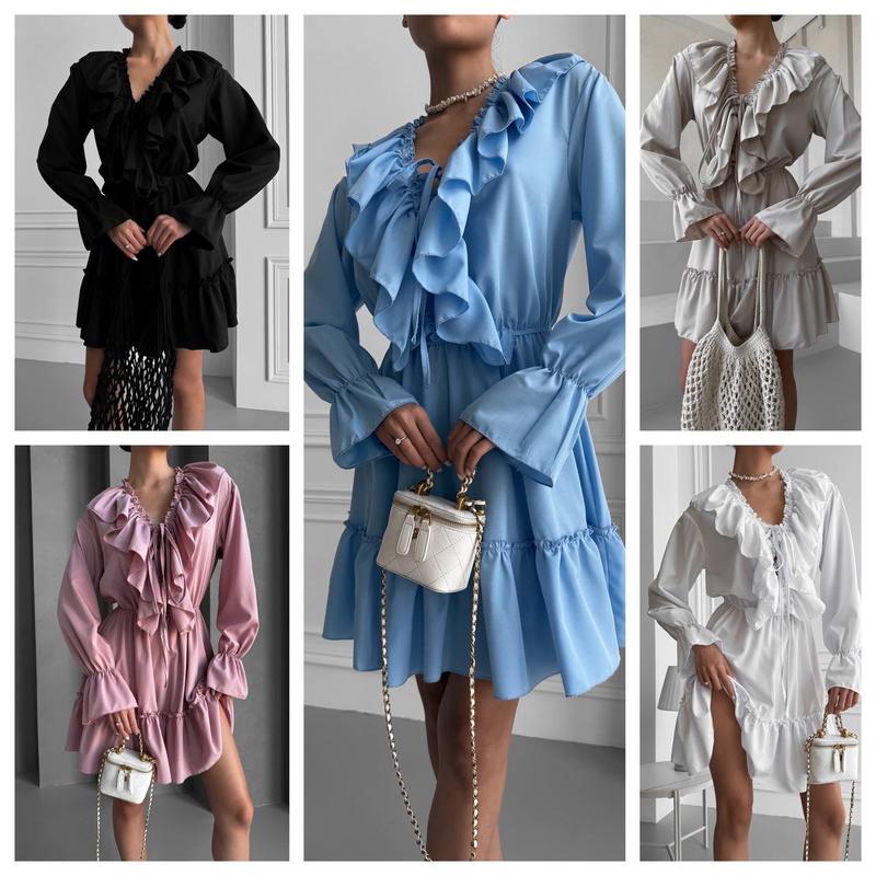 Очень красивое и трендовое платье🥰 Модель 5633 Женское платье Тканина софт Размерный ряд S,M,L,XL Цвета голубой, белый, пудра, беж и черный Супер качество