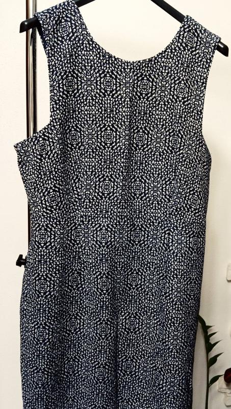 На наш 48-50 розмір. Сукня в ідеальному стані, як нова, рідко вдягала. Купувала до війни закордоном, як і всі мої речі за 60 Євро. Довжина на рівні колін, спідниця трохи розширена до низу. Є підклад. Дивіться інші мої оголошення - розпродую свій гардероб, багато зовсім нових речей