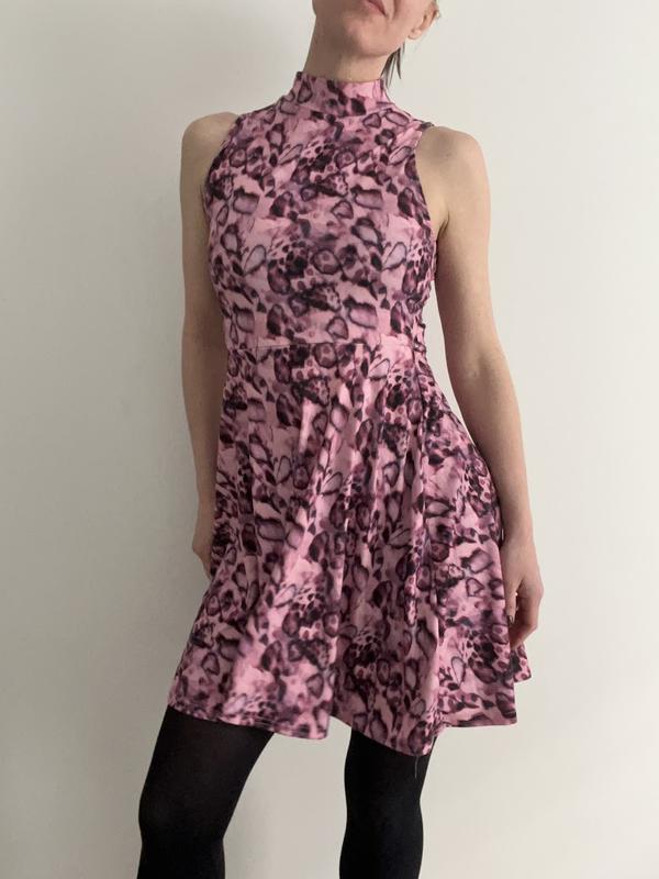 Платье karen millen розового цвета с леопардовым принтом и высоким воротником (горлом), ра...