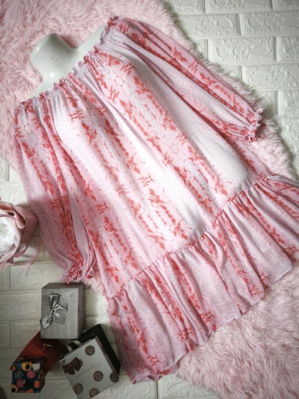 Платье оверсайз с рюшами, плечи открытые, ткань шифоновая, просвечивается, верх и манжеты на резинке Замеры на фото