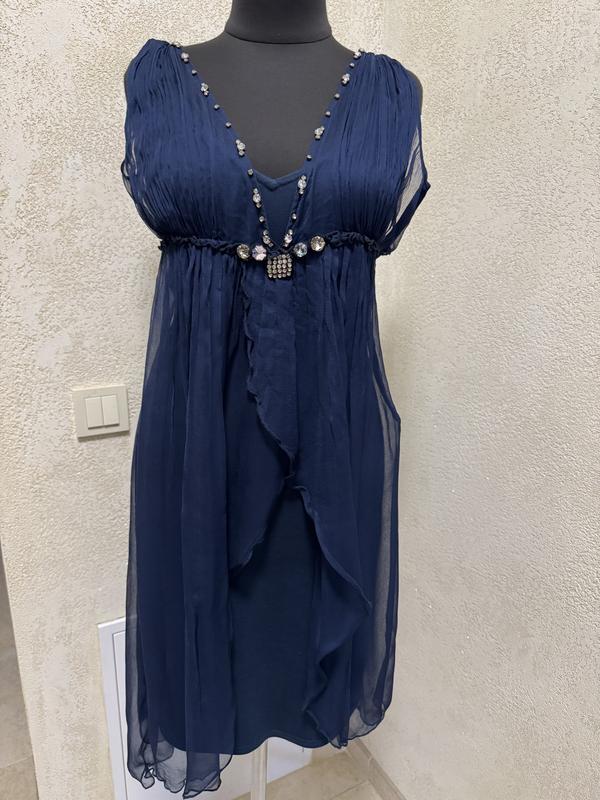 В идеальном состоянии Нижнее платье на бретелях - вискоза, замеры на фото Верхняя накидка, декорированная камнями - 100% шелк