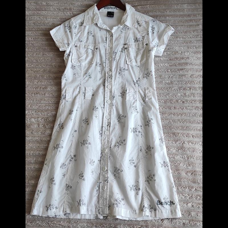 Летнее платье Bench в белом цвете в цветочный принт в светлом сером цвете, смотрится очень нежно. Размер S/M, ориентируйтесь по замерам ниже. Стан идеален, без нюансов. Есть сверху два накладных кармана и лямки под пояс (без пояса). Ткань натуральная, очень приятная к телу, немного просвечивает. Замеры: длина 86 см, ширина плеч 36 см, полу объем груди 44,5 см, полу объем талии 40 см, полу ширина подола 55 см, длина рукава 12 см. Пересылаю по Новой почте и Укр-быту, в том числе и через безопасную оплату.
