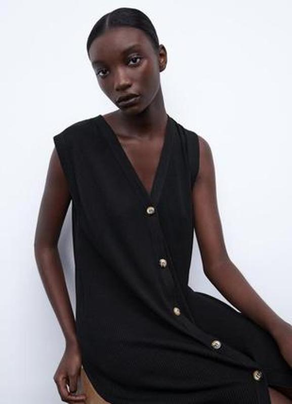 новое стильное платье-жилетка,можно самостоятельно,можно под рубашки в другую одежду. Английская вязка, без дефектов. Размер неуказано-на различные размеры размеры рукав-плечье от горловины 24 пройма 19 вырез от плеча до пуговицы 22 пог 54 талия49 бедра55 длина от плеча 106