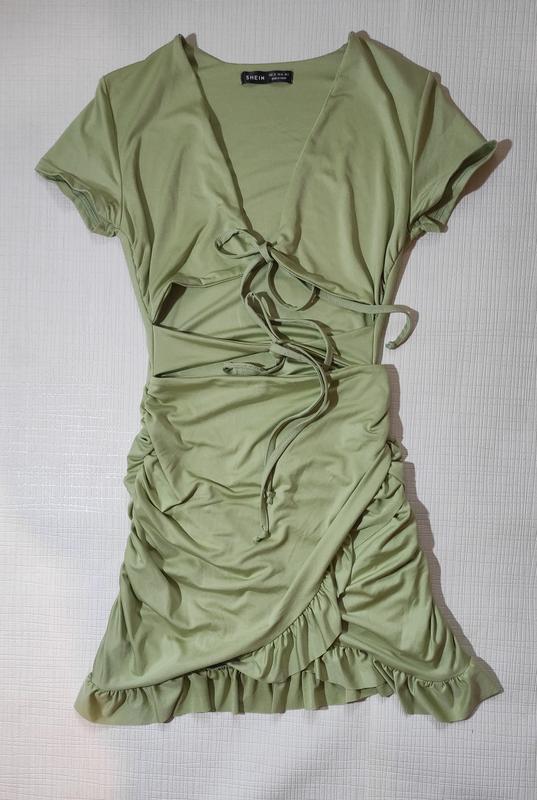 Платье на завязках на животе и груди, с открытым животом