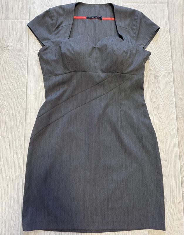 Платье-футляр, классического серого цвета, идеально подойдет как в офис так и на вечерний выход. Ткань слегка стрейчевая, благодаря чему красиво ложится по фигуре. Размер М, длина 88 см. Производитель Турция.
