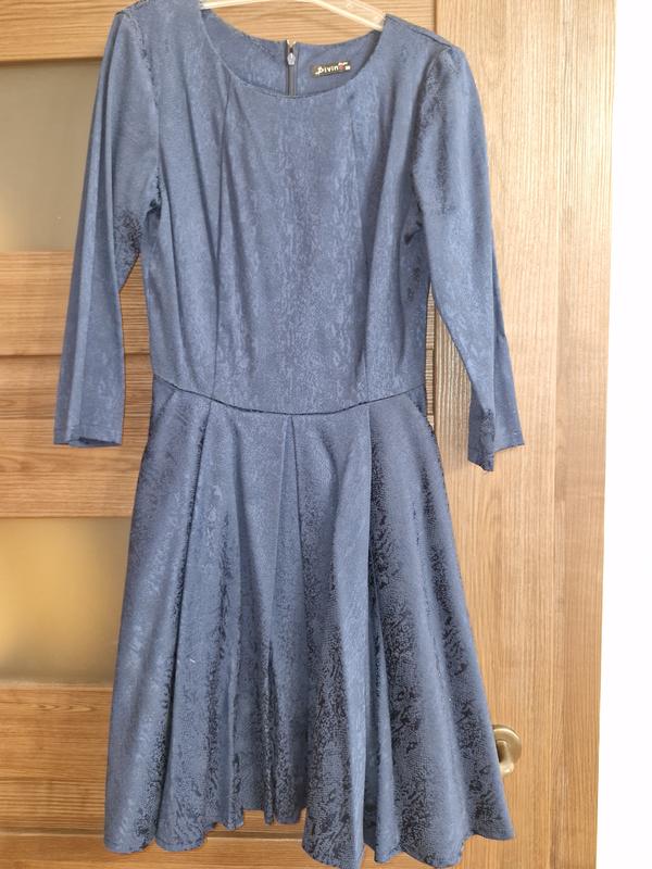Платье на все времена года. Подойдет для любимых праздников. Очень красивый насыщенный синий цвет с жаккардовым рисунком.Довга молния.Длина 85 см. Обхват груди 80 см.