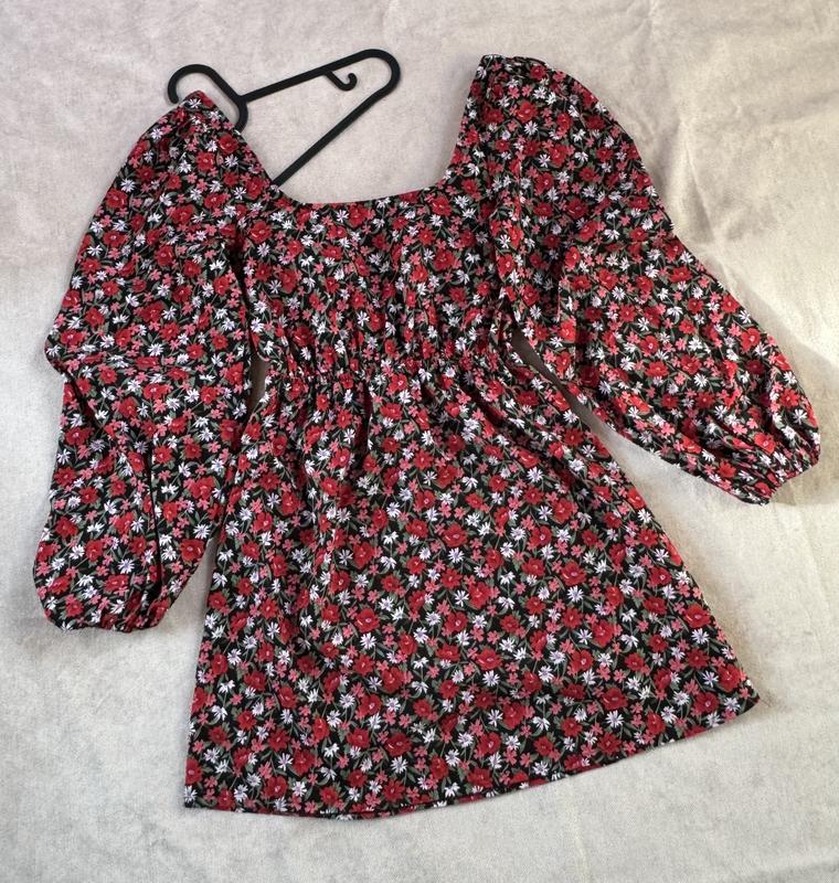 Платье на размер XS S, талия и рукава на резинке, на спинке регулируется шнурком.
