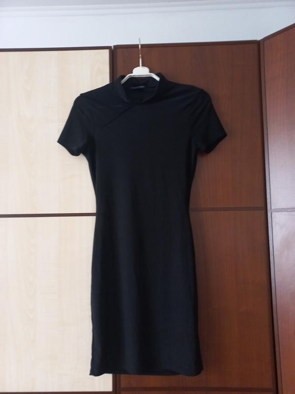 черная мини-платье в китайском стиле. Ткань слегка просвечивается