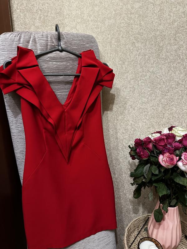 Платье ярко красное с оригинальным вырезом декольте и спинка, оригами