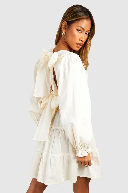 Багаторівнева міні-сукня з довгим рукавом і льоном boohoo m-l бежева