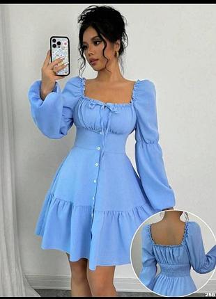 Дуже гарна, модна сукня, тканина легенька, на ґудзиками. зверху регулюється шнурками. на спині резинка