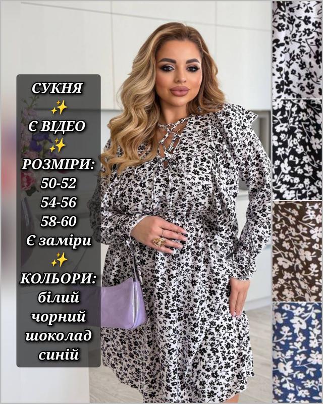 Нежное платье в самых трендовых принтах 🔥 Сукня Мод. 363 Тканина Принтований Софт. Размеры: 50-52, 54-56, 58-60. Цвета: Белый, Черный, Шоколад, Синий. ДУЖНОЕ ГАРНАЯ КАЧЕСТВО, ОТМЕННОЕ ПОШИТИЕ!!! ✏️Замеры✏️ 50-52 ОГ 110 см, длина 96 см, дл рукава 61 см, талия на резинке тянется до 120 см. 54-56 ОГ 120 см, длина 98 см, дл рукава 62 см, талия на резинке тянется до 123 см. 58-60 ОГ 130 см, длина 100 см, дл рукава 63 см, талия на резинке тянется 126 см. Есть видео обзор Есть замеры Перед оформлением заказа обязательно ознакомьтесь с разделом "Про меня" на странице магазина или уточняйте все детали в личных уведомлениях. Нажимайте кнопку "Подписаться", чтобы не пропустить новинки, выгодные акции и распродажи!