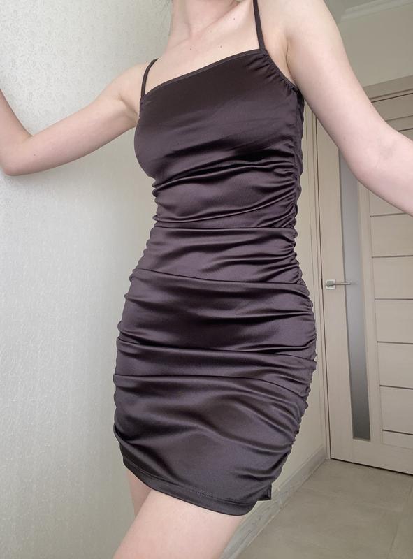 Чорна атласна облягаюча сукня у гарному стані По бірці розмір xxs, але підійде на xs і не повну s Мої параметри 80-60-90, ріст 163