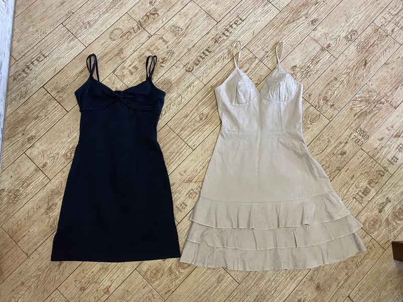 Ціна за дві сукні Чорне міні плаття, бежеве літнє плаття. чорне: талія 30, довжина без шлейок 67 бежеве: талія 31, груди 36, довжина 77 без шлейок