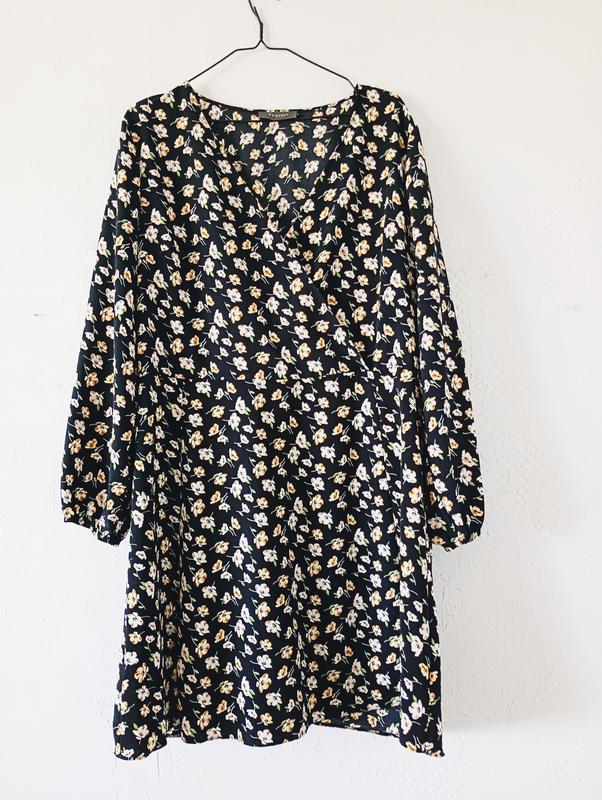 короткое платье в цветочный принт. полуобхват груди 64 см полу охват талии 52-55 см ширина юбки в широком городе 70 см длина 95см длина рукава 60 см ширина рукава 22 см