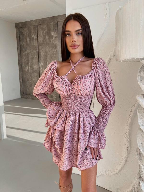 Красива сукня у квітковий принт з завʼязкою на шиї