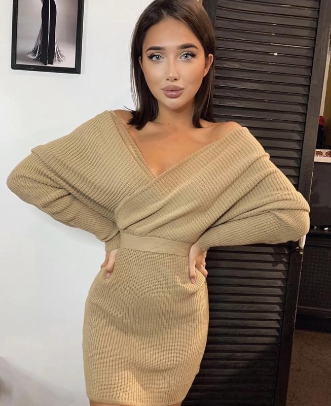 Платье крупной машинной вязки Можно спускать на плечи Размер: универсал Длинна: 85 см Цвета: черное, бежевое