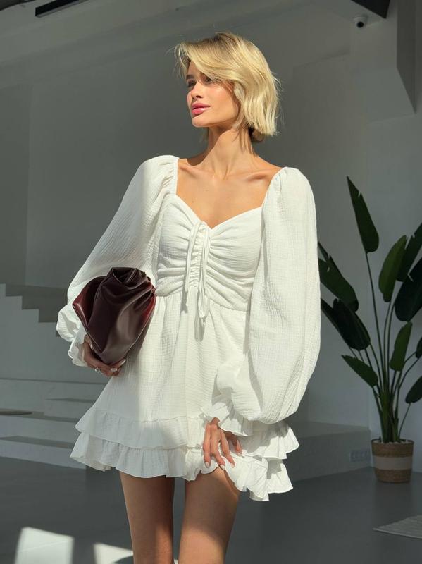 ‼️ОТПРАВЛЕНИЕ ВПРОДОВЖ 1-5 РАБОЧЫХ ДНЕЙ!!️ФОТО ВЖИВУ ‼️ Легкое и воздушное муслиновое платье с двойной юбкой, украшенное нежной рюшей. Регулируемая сборка на груди позволяет подогнать платье по фигуре, добавляя женственности и шарма. Широкие объемные рукава придают образу изысканности и непринужденности. Размер: 42-44, 46-48 Цвет: голубой, оливковый, желтый, коричневый, молочный, бежевый. Ткань: муслин art: KIRA01