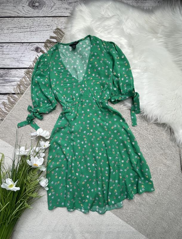 Натуральна сукня Розмір 10, як по мені на невисоку дівчинку С-М, стан відмінний, є один незначний нюанс( ост фото) Д 84, пог 44, пояс 35, ззаді резиночка і є завʼязки поб до 52