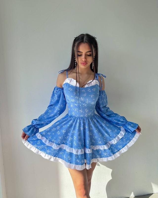 Новинка 🤍 Невероятно женственное платье из воздушной и воздушной ткани. На плечах завʼязки 😍 Мод 629 / Чери С - 1486. ▪️Тканина: софт ▪️Размеры: 42-44, 46-48 ▪️Цвета: черный с белыми цветками, голубой с белыми цветками ▪️Спинка на потайной молнии ▪️Хорошее качество ▪️Фото реал📸