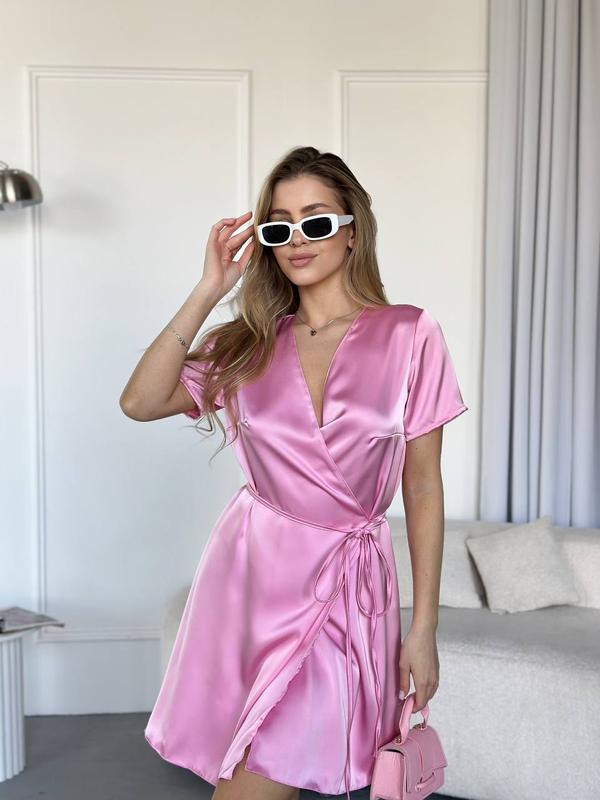 Сукня мод 189 Фото наживо реал Полочка в течение 2-5диб 🌸 по полной оплате на карту перед заказом уточняйте наличие и условия 💕 ☑Размер:42-44,46-48 ☑Цвета:черный,голубой, зеленый,розовый, золотой ☑Тканина:дабл шовк Платье на запах, очень хорошего качества🌸Стильная, яркая и удобная 🌸 @****